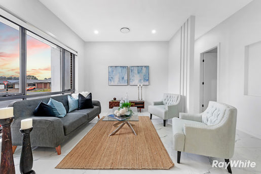 This stylish single-storey family home features a large open floor plan and bright interior finishes to create a welcoming ambience.